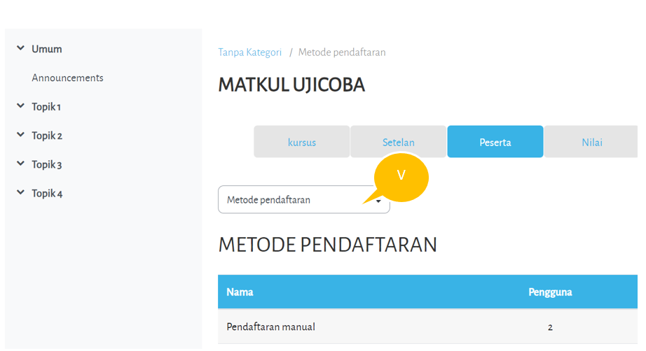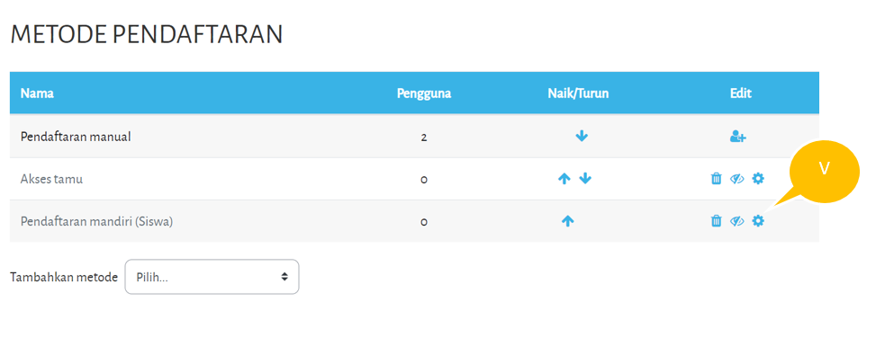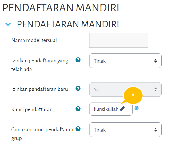 Klik tombol Simpan perubahan untuk menyimpan data. PIN enrolment selanjutnya dapat dibagikan kepada mahasiswa di kelas agar mereka dapat melakukan pendaftaran mandiri.
