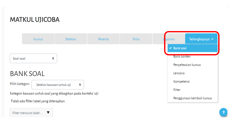 Manajemen bank soal dapat dilakukan dengan membuka laman bank soal pada sebuah kursus :