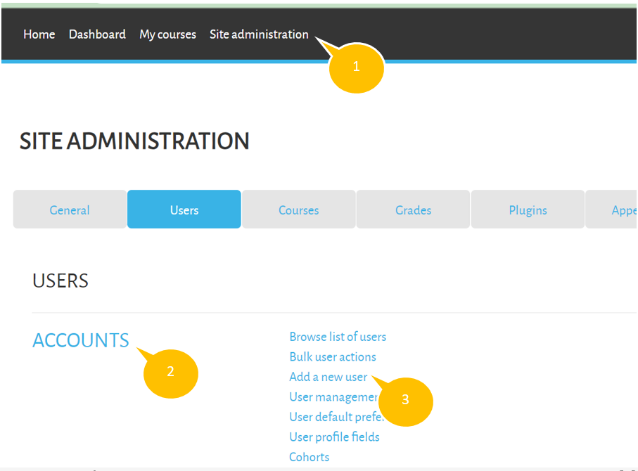 Penambahan akun dosen dilakukan secara manual. Hal ini berbeda dengan akun mahasiswa yang langsung diintegrasikan dengan Sistem Informasi Akademik. Penambahan akun dosen dapat dilakukan melalui laman "Site administration - Account - Add a new user" :